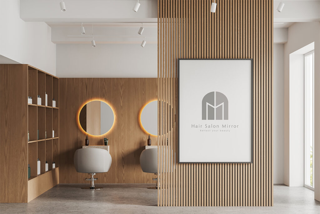Hair Salon MIirrorのロゴデザイン 前提条件 デザインの説明 シンプルながらも印象的なデザインで、真ん中で色が分かれることで鏡に映った自分と新しい自分を表現しており、お客様が自己の変化を楽しみながら、新し