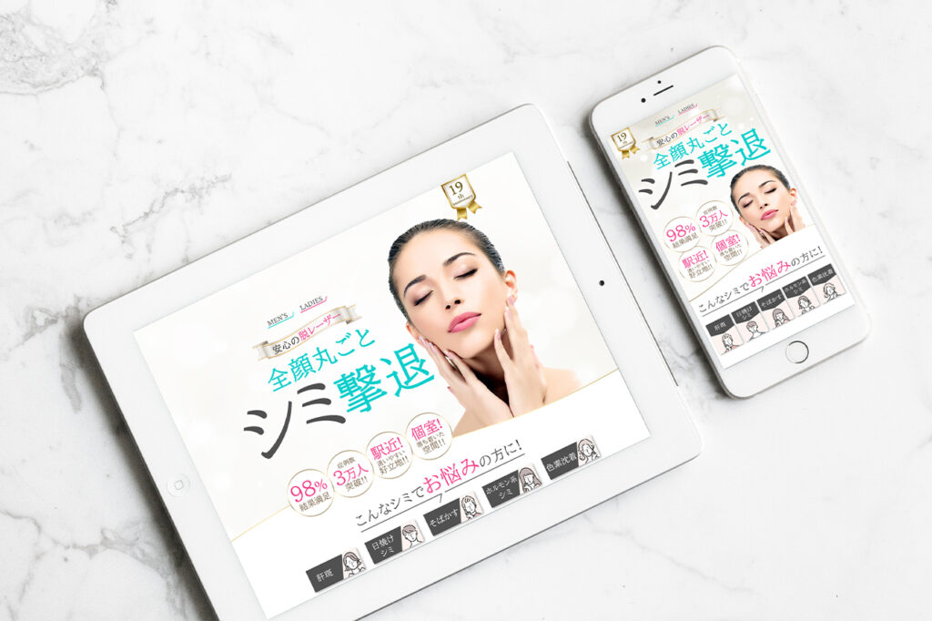 エステサロンホームページのファーストビュー画像 前提条件 デザインの説明 背景をホワイト系にする事で、タイトル文字のカラーが引き立つようにいたしました。 テーマカラーのティファニーブルーはメインタイトルに使用し、 メイン