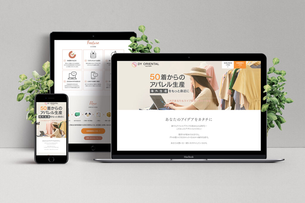 小ロットアパレル生産ホームページ 前提条件 デザインの説明 アクセントカラーのアレンジが引き立つよう、それ以外の配色はベージュ系でまとめスタイリッシュな雰囲気をイメージしました。
